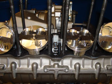 Zunächst zerlegen wir den Motor, vermessen alle relevanten Bauteile und reinigen das Triebwerk gründlich, wozu auch das Glasstrahlen der Ventile gehört. Anschließend erfolgt das Tuning von Meisterhand: Kanäle des Zylinderkopfs vergrößern, strömungsgünstig fräsen und glätten (Superflow-Bench-Tested); Brennräume modifizieren und alle vier Brennräume auf gleiches Maß auslitern; Ventilsitze von innen weiter nach außen drehen und auf exakte Sitzbreite fräsen; Spaltmaße zwischen den Kolbenböden und Brennräumen ändern, Zylinderkopf komplettieren, erneut exakt auslitern und die Verdichtung minimal erhöhen; Steuerzeiten der Nockenwellen auf größere Ventilüberschneidung einstellen und Ventilspiele präzise auf LKM Maß ändern. Es folgen Einstellarbeiten an der Einspritzanlage, der Airbox und der Zündung. Nach der Fertigstellung des Motors führen wir eine komplette Inspektion am Motorrad und eine weitere Leistungsmessung durch.
