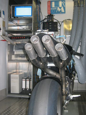 Motorrad: ´Die von Ihnen durchgeführten Tuningmaßnahmen sind TÜV-konform. Wie ist es möglich, die Leistung der Euro-3-Norm noch zu steigern? - Hennes Löhr: ´Wir optimieren den Motor, wir bauen ihn ja nicht komplett um. Eine verbesserte Zylinderfüllung durch eine verbesserte Strömungstechnik erhöhen Effektivität und Leistung. In den meisten Fällen nicht aber den Verbrauch. Deshalb sind unsere getunten Motoren oft sparsamer, stoßen folglich weniger Kohlendioxid aus und halten alle anderen Schadstoffgrenzwerte ein. Eine Lambdasonde bleibt ebenso ins Motormanagement eingebunden wie ein Kat. Auch unsere Brennraumoptimierung und das Variieren des Verdichtungsverhältnisses sind nicht schadstoffrelevant.´
